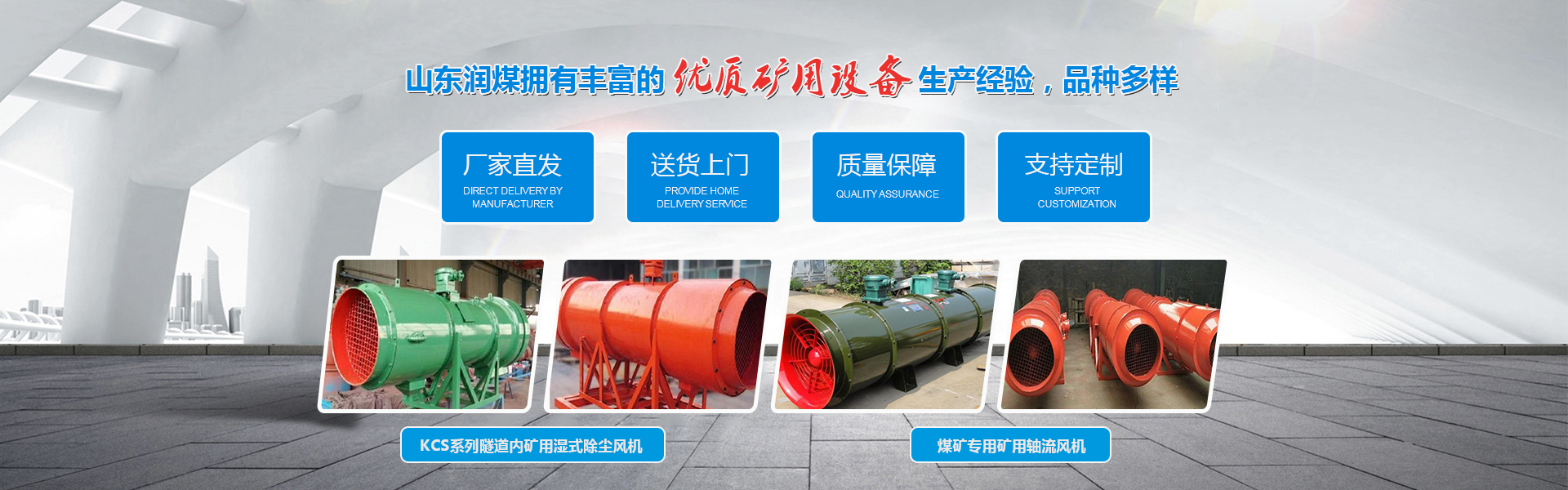 山東潤煤礦山設備制造廠家生產各種礦用風門、ZMK-127遠程自動無壓風門、煤礦遠程智能自動調節風窗、風門自動控制裝置系統、自復式立井防爆門,煤礦用除塵風機,遠程電動液壓防水防火密閉門;KCS系列礦用濕式除塵風機、礦用風機遠程智能自動控制管理系統、KCG系列礦用干式除塵風機,煤礦專用礦用軸流風機,FBD系列礦用隔爆型壓入對旋軸流局部通風機、風機用分風器,FBCD礦用防爆型抽出式對旋軸流局部通風機、正壓導風筒、負壓導風筒、風筒支架、風筒連接器等礦山礦井通風、機電設備。